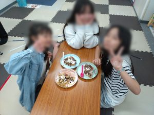 10月25日(土)の活動はハロウィンパーティー。盛りだくさんの内容が用意されています。まず午前中は折り紙でハロウィン版ラブブを制作。みんな一所懸命取り組んでいましたよ。そして午後からは、まず地域との交流の一環として、仮装をして近くの保育園やコンビニを訪問。「ハッピーハロウィン!」と言って、お祝いのメッセージとプレゼントをお届けしてきました。事業所に戻ってからは、ケーキの飾り付けをしたり、マルバツクイズ大会やビンゴ大会で大盛り上がり。デコレーションしたケーキはおやつの時間にいただき、とってもおいしかったです。楽しい楽しい1日でした!
