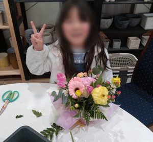 1月24日(土)の活動はフラワーアレンジメント。季節の花を使って花束を作ります。Te to Teではすでに何度か実施しており、人気定番メニューの一つとなっています。当日、午前中は近郊の公園で思いっきり体を動かして発散し、午後から協力先のお花屋さんでいざフラワーアレンジメントに挑戦。スタッフさんに花の切り方や挿し方、飾り方などのポイントを教えていただきながら、スイートピーやチューリップ、トルコキキョウなどを使ってアレンジしました。初めて経験する子どもたちもいましたが、みんな自分なりの感性で美しく作り上げ、満足のできばえとなりました。ぜひおうちに飾りましょう!