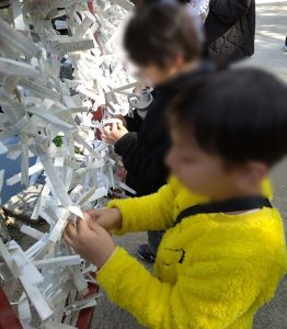 3月7日(土)の活動は、太宰府へのお出掛けです。まずは太宰府天満宮の近郊にある梅林アスレチックスポーツ公園でお昼ご飯を食べて、公園でひと遊び。陸上トラックでかけっこ競争もしました。その後、太宰府天満宮へお参りに。梅の花が満開に近いほど咲いていて、観光客の方もたくさん。おみくじも引いて大吉をゲットしました! そして最後は、虹のトンネルを通って九州国立博物館へ。体験型展示室「あじっぱ」でたくさんのアジア文化に触れ、楽しい時間を過ごしました。盛りだくさんで太宰府を満喫した1日でした!